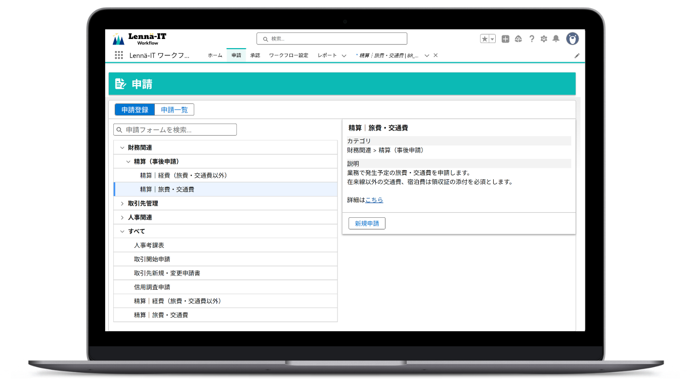 Lennä-IT ワークフローは、Salesforceを基盤としたSaaS型ワークフローサービスです。